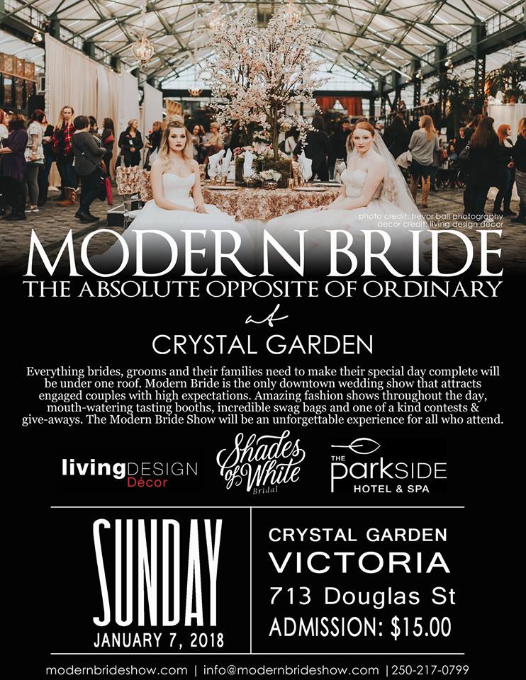 West Coast Weddings is happy to be a sponsor of the Modern Bride Show taking place January 7th, 2018 at Crystal Garden in Victoria.