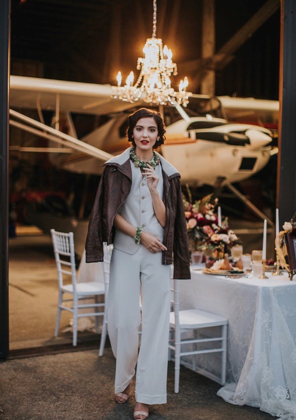 We thought one of the more special moments in this inspirational shoot was the PANT SUIT SHOUT OUT to Amelia. A gorgeous, crisp white with flared pants and finished perfectly with a vintage aviator jacket!
