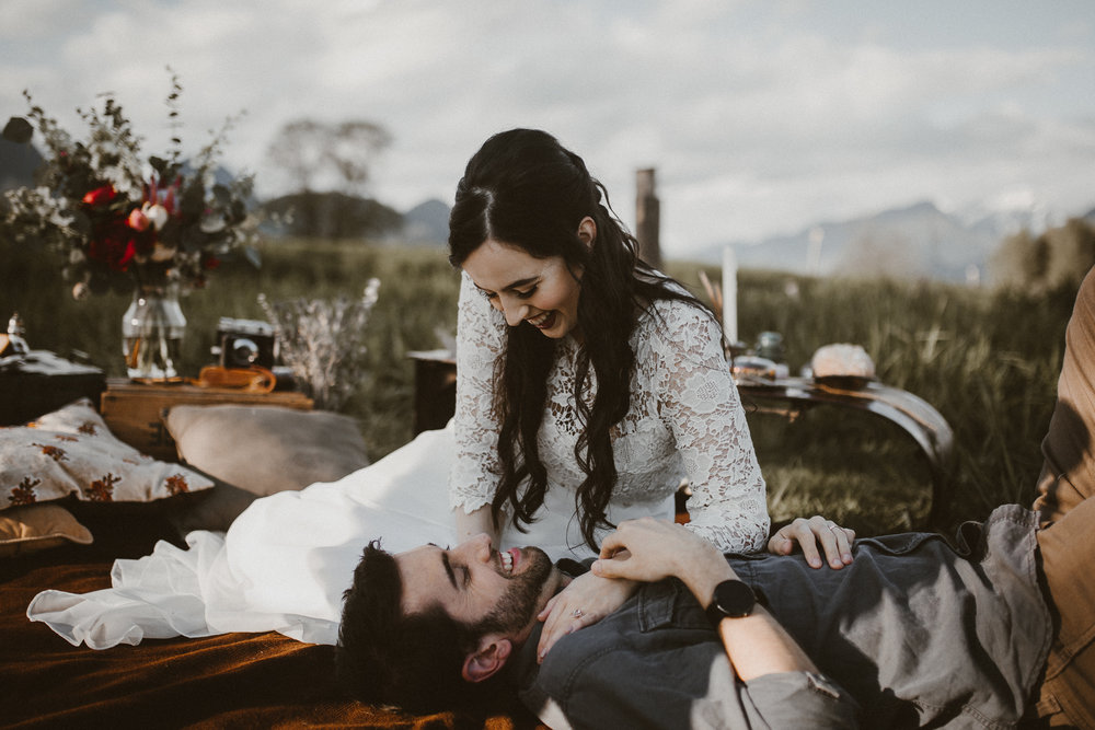It’s not everyday that you can catch a glorious mountain sunset for your wedding shoot but if you can….this is what can result!! So talk with your photographer, consult the sunset times online and plan your picnic for two. Your photographer will likely know some of the most beautiful spots to shoot and can help you plan your picnic look and theme.