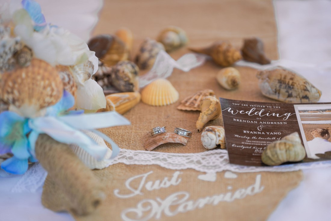 The couple embraced the weather and said their vows excitedly while standing between the ocean and mountains. Immediately after signing their marriage license, the sun came out! With blue skies and the gorgeous mirror of the beach shallows, they created some amazing images by the sea. The umbrellas ended up adding a special touch to the day.