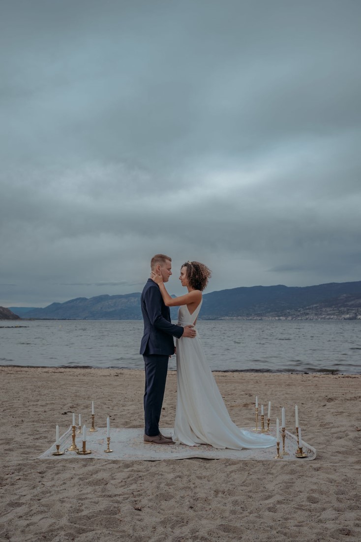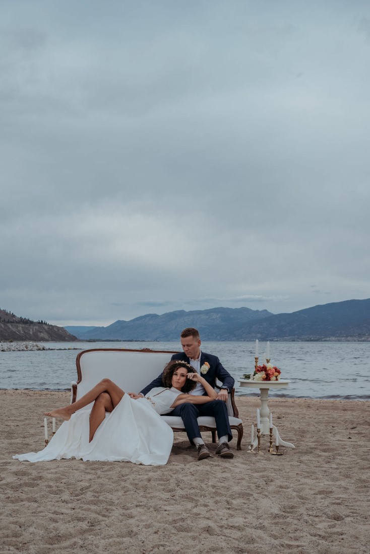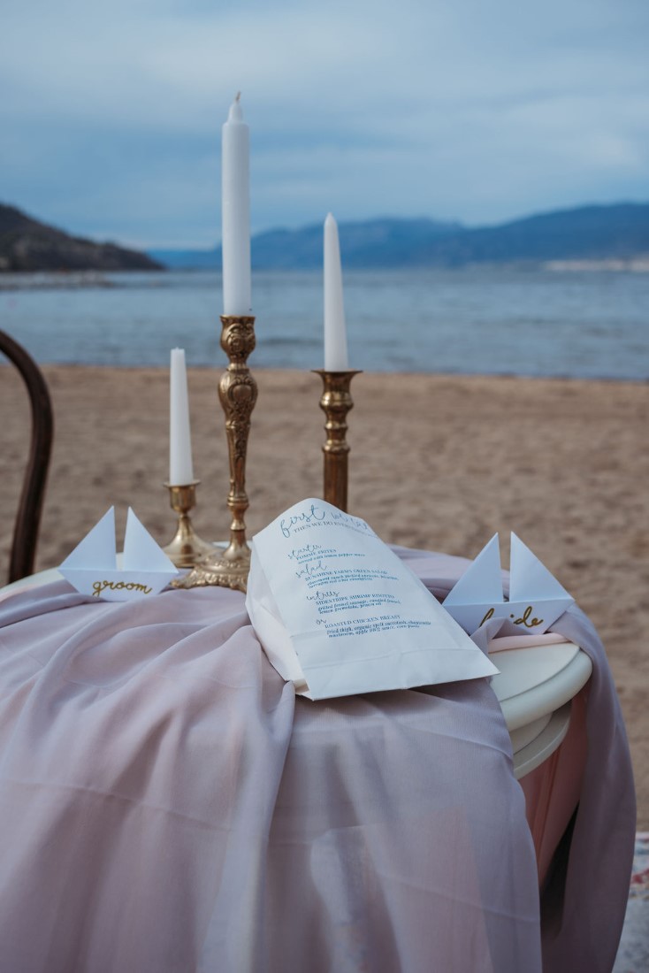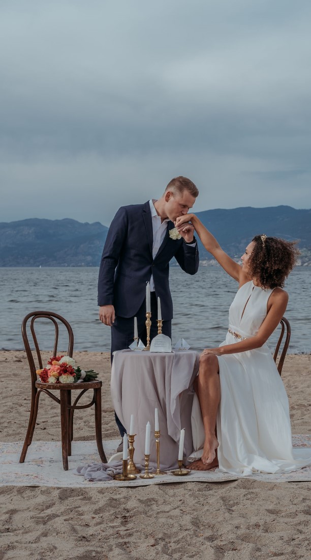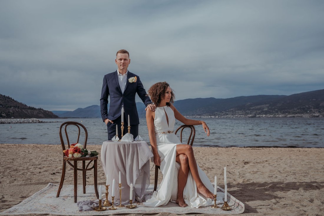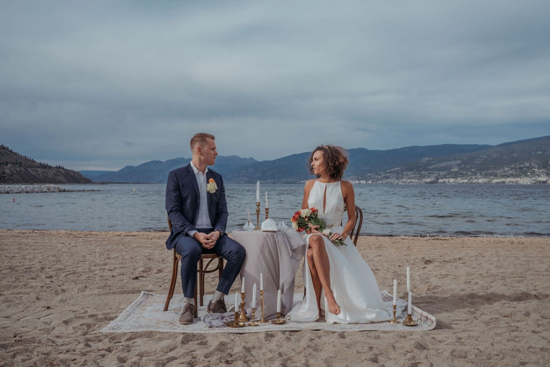 A lakeshore sweetheart table for two is the perfect way to celebrate an elopement, intimate wedding or as a backdrop for a couples photography session – a real west coast wedding inspiration! The best part is that all the local wedding professionals who were involved in this styled palette are female owned businesses in Penticton – part of the Okanagan Valley that is becoming a very popular wedding destination.