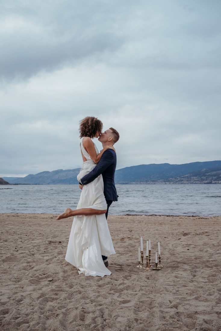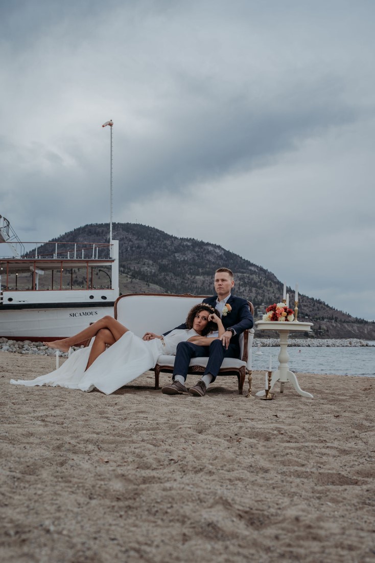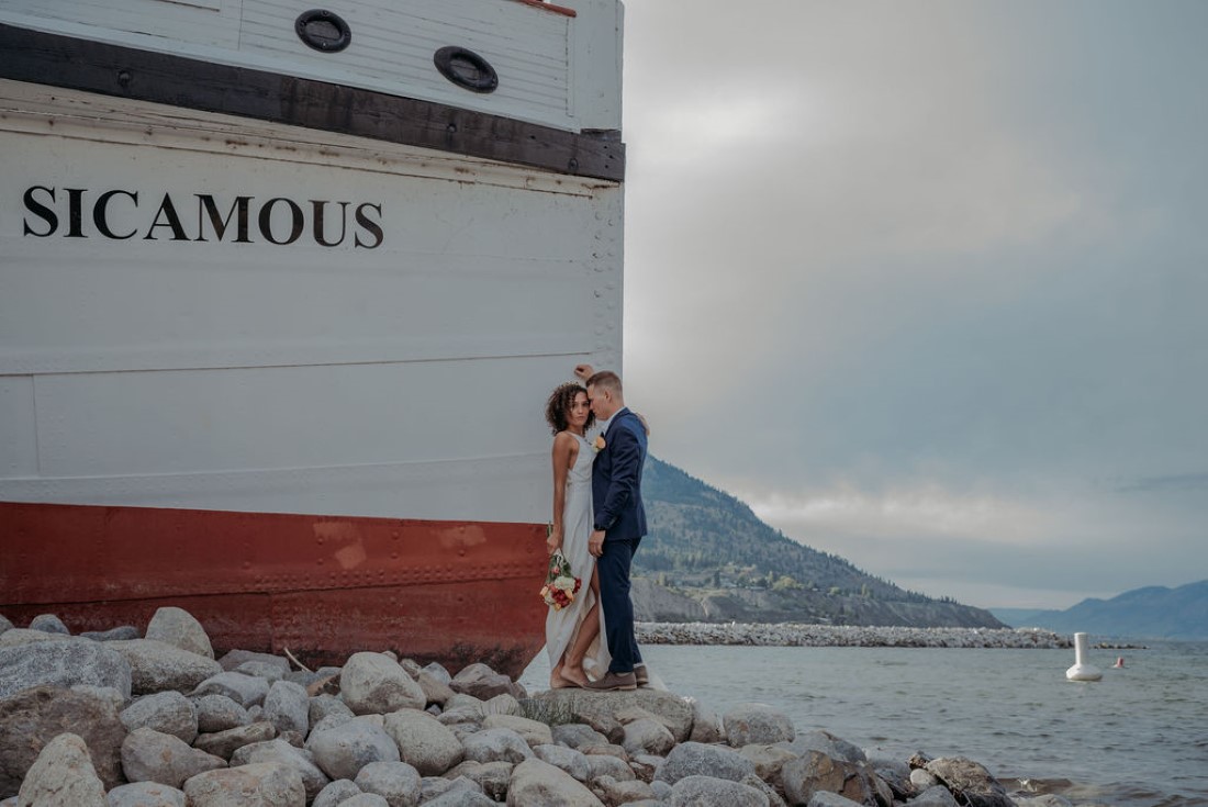 The Sicamous ship sits along the beach and has it’s own history. This steamship began working the river in Penticton in 1914 and remains today as a museum. Wedding couples are fortunate if such historical backdrops are available for their intimate photography session and this shoot took advantage of the whole nautical theme.