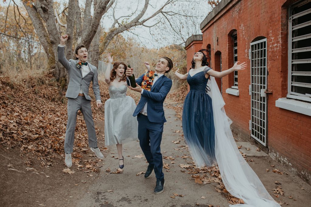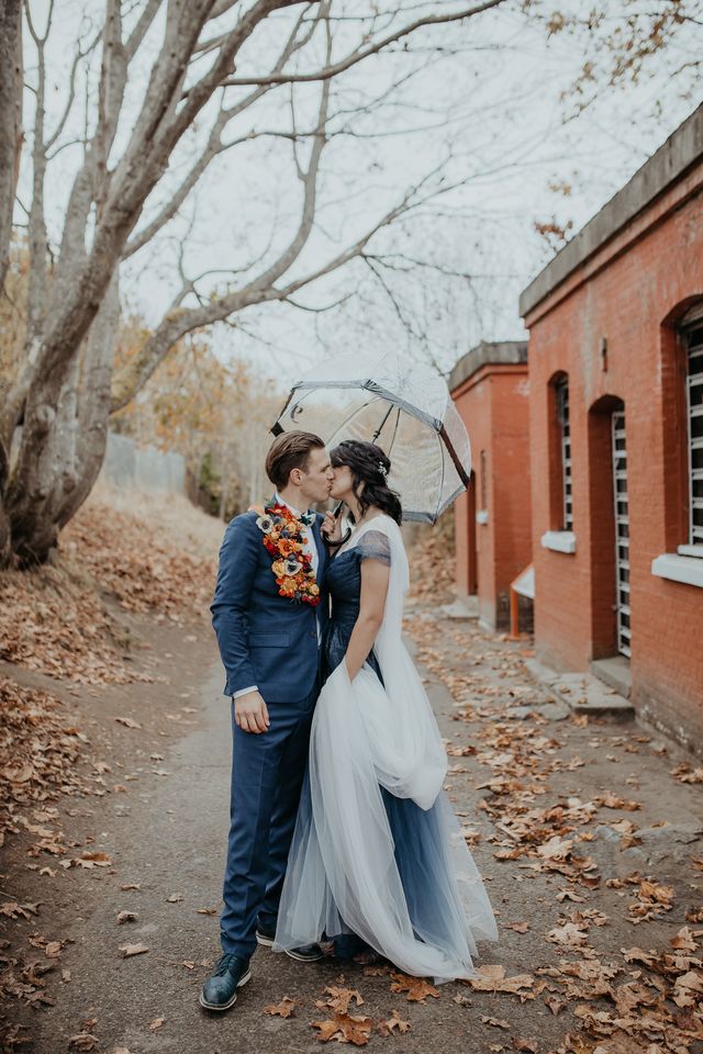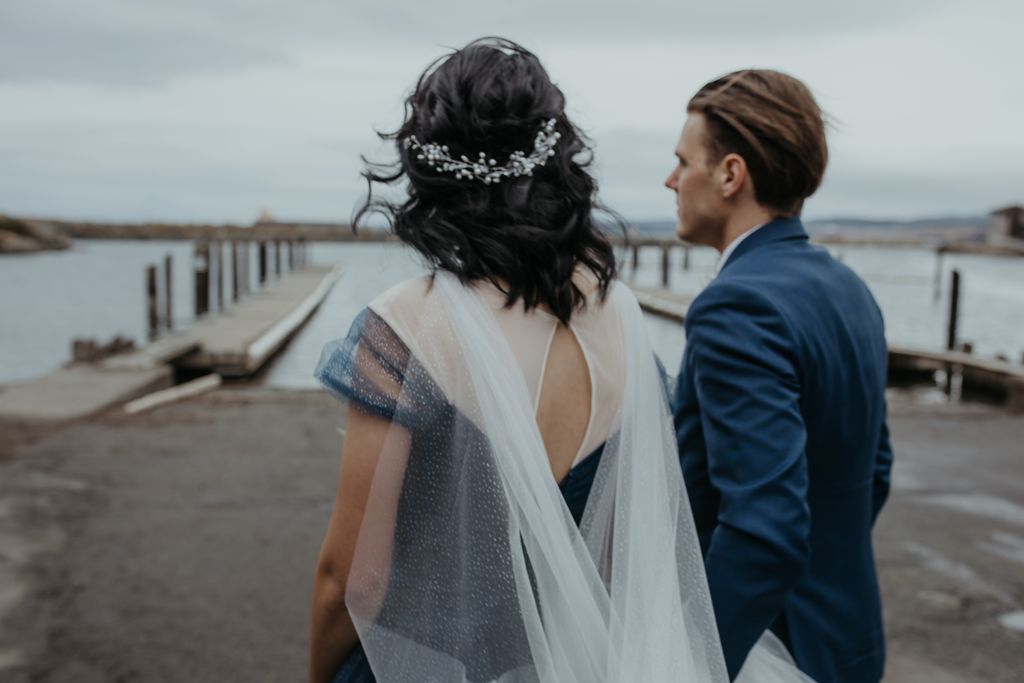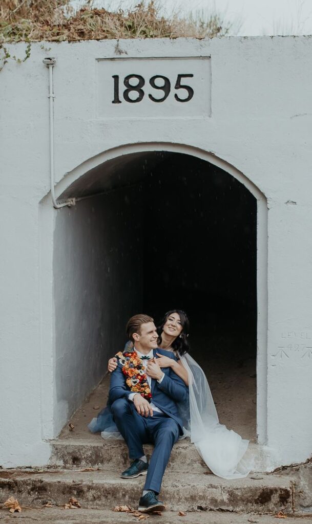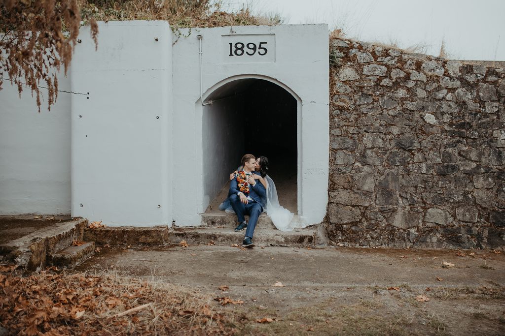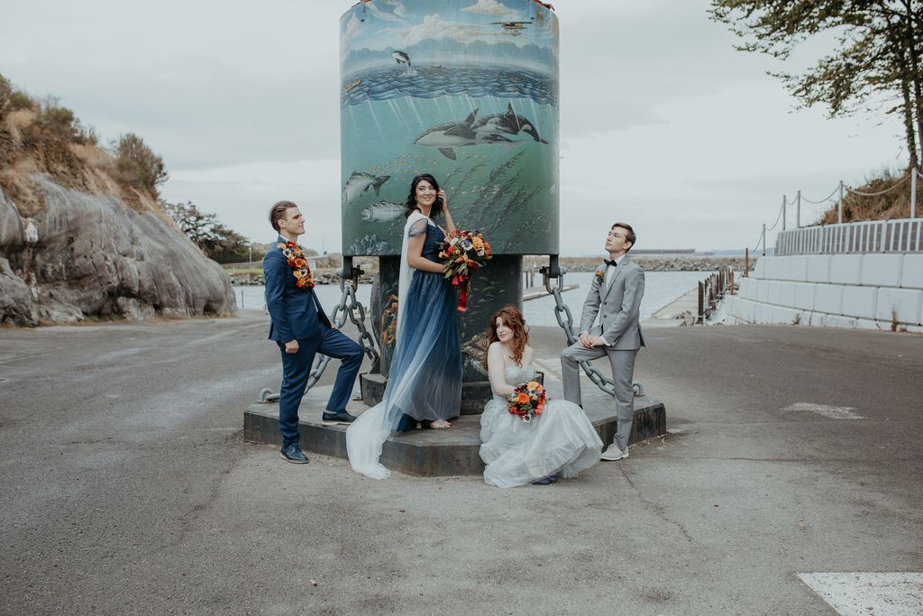 Emma and Shamus decided to make their ceremony the biggest part of their wedding weekend. It was attended by many family and friends, and there was a considerable presence of guests on Zoom. (We have to give a shout-out to the MOH who walked down the aisle through a fashion disaster with the chutzpah of a rock star – and still kept all her attention on the bride!!) The newlyweds chose to spend time afterward taking photos and put off the reception until the next day. So they could relax and have fun with the images, and it shows. Vancouver Island weddings have the best places to take some pretty epic shots!