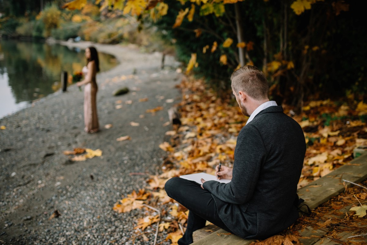 So we loved Veronica and Quinten’s engagement story because they did it all! They both love drinking tea so the ‘tea for two’ picnic was perfect. It also led to some great blanket shots among the forest trees. The ocean side showcased Quinten’s love of photography and sketching while Veronica channeled her inner goddess which was perfect for the lovely floral bouquet. We especially loved the great smiles on these two! The gorgeous sunset in the background is a real highlight as well. This wonderful tea for two engagement is a real inspiration for couples!