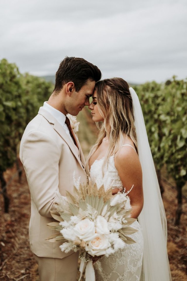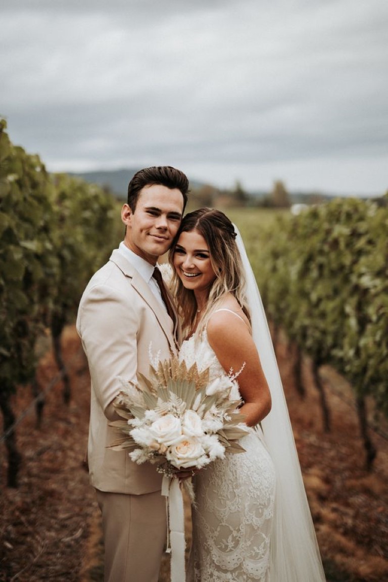Korbin and Caitlyn’s stunning vineyard wedding at Church & State Wines on Vancouver Island inspires West Coast couples looking to impress. Every unique detail was designed by a bride with a vision who especially loves the chic aesthetic of dried grasses. Guests were wowed by the ceremony with a view and sipping on the chosen wines for the special day (the couple and their families enjoyed that process!).
